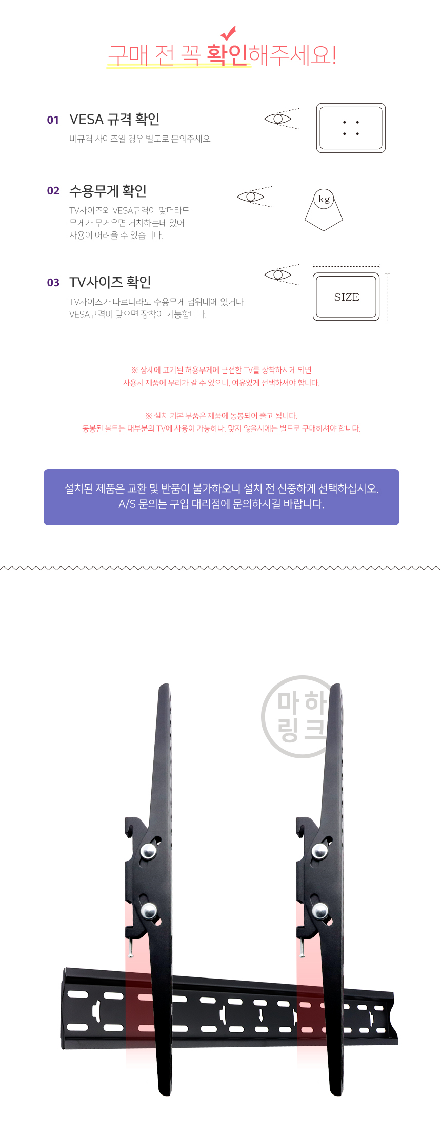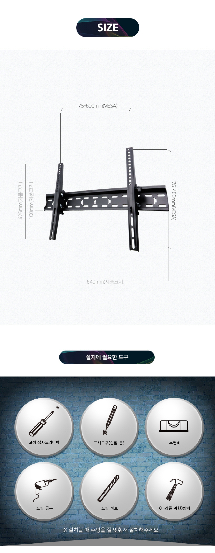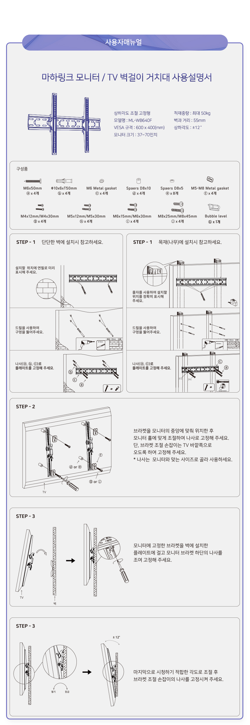 마하링크 TV 벽걸이 브라켓 600X400 상하 각도 조절 거치대 ML-WB640F