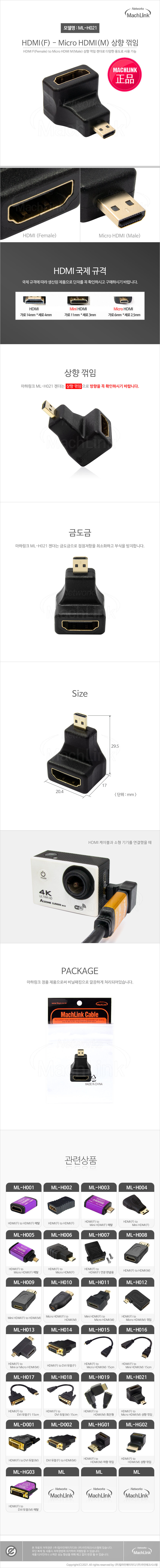 마하링크 HDMI to Micro HDMI F/M 상향 꺾임 젠더 ML-H021